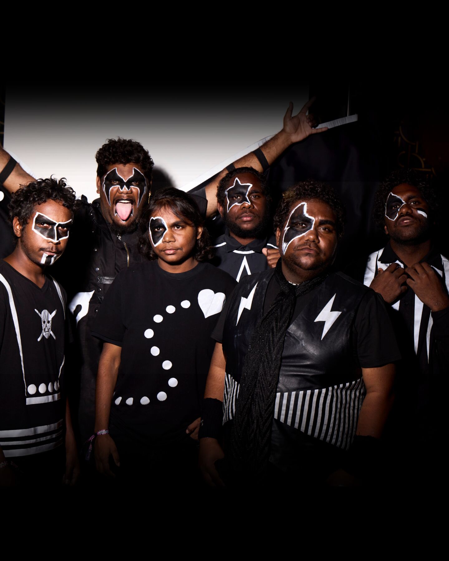 Somewhere between the red dust of central Australia and the front row of a KISS show, Mulga Bore Hard Rock found their calling. The six-piece family band from Akaye, a remote community two hours northeast of Alice Springs in the Northern Territory, have built their sound on a diet of KISS, Guns N' Roses and Status Quo, filtered through the Anmatyerre country they call home. Frontman Alvin Manfong leads the charge with big riffs, even bigger anthems, and lyrics in both English and the language of their mob.